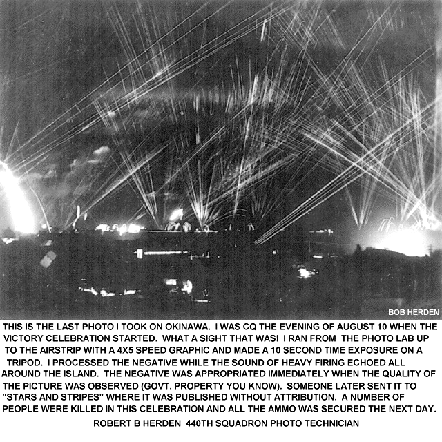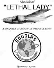 From: "26buzzoff" <26buzzoff@cot.net> To: "Webmaster" <blairwolf@hotmail.com> Sent: Friday, March 02, 2007 12:58 PM Subject: WWII & KOREA STORY Hi Blair, Welcome back. A true story titled "The Life of 'LETHAL LADY', a Douglas A-26 Bomber in WWII and Korea" has just been completed. The story is told by the airplane and starts at the Douglas factory in Long Beach. It describes the flight to Savannah to join the 319th Bomb Group, then back across the country, across the Pacific, the missions out of Okinawa, and her duty with the 13th Squadron of the 3rd Bomb Group in Japan and Korea flying missions against the North Koreans. We are self-producing a limited edition of about 50 copies. Each copy contains 36 letter size pages which included photos and maps., nicely bound in a report cover. We are offering this limited edition for $5 each (includes US mailing). Those who have read the story are very pleased with it.. Anyone who would like a copy of "The Life of Lethal Lady" send a check for five bucks to: Gene Ryan Thanks Gene |
