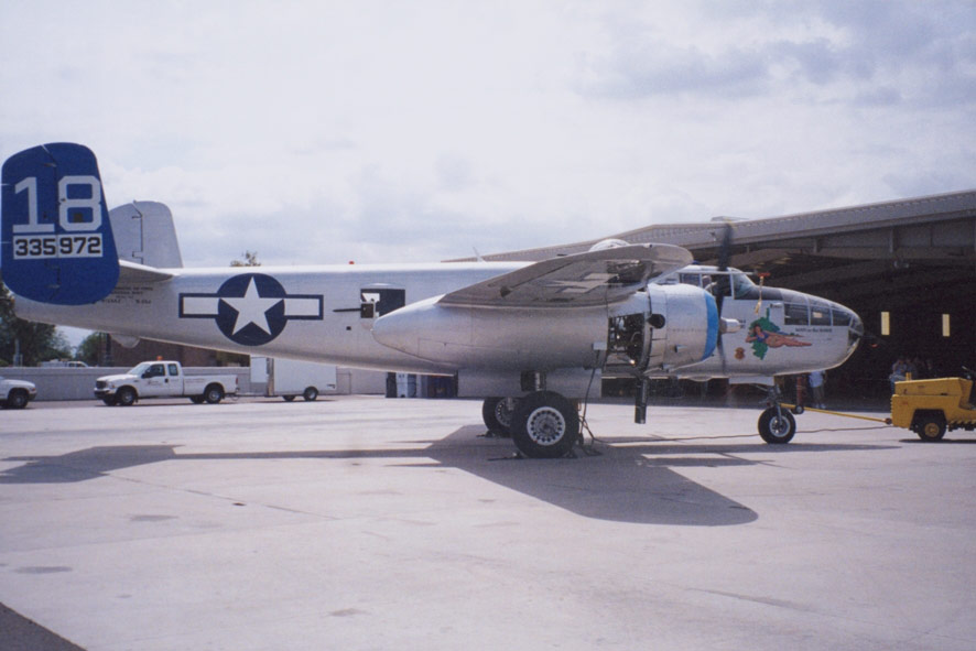 From: ij.scarlett@att.net I am trying to contact any members of the 319th that are interested in the restoration of aircraft, B-25 43-35972, battle #18. This aircraft flew with the 437th Squadron I believe. It is currently undergoing restoration here in Phoenix AZ. The craft is being restored to airworthy condition with plans to fly regularly. This will be one of the few flying restored WWII aircraft with actual battle experience. We have a few crew lists from bombing runs out of Corsica and would like to get in touch with anyone who might be interested in the aircraft. Could you let me know who I should contact in your reunion group in order to spread the word.