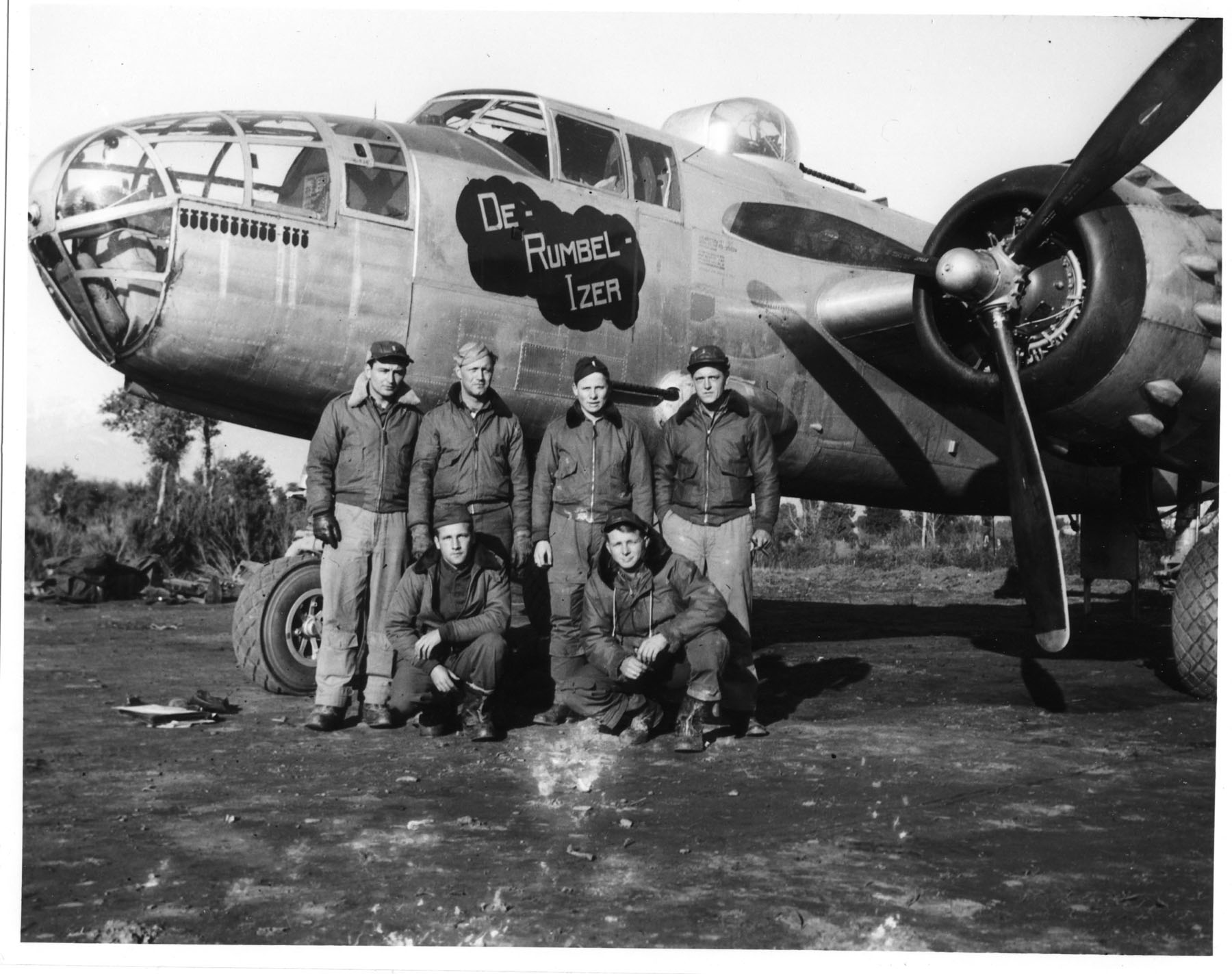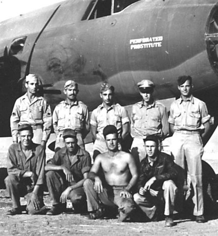 From: alaina Hello you have a picture posted on your website 438th." Perforated Prostitute" Jack Jeter (no shirt) Can anyone name others? I have the same picture with the names and ranks of the crew printed on the back. Are you still interested? Let me know if you are. Alaina Wallace wallace172@comcast.net Could you tell me who posted the picture? I would like to get in touch with him to see if knows anything about the men in the picture. One of the men is my father in law and I am trying to find out some info on his military history. I will send the names and ranks of the men in the picture with the next email. Thanks, Alaina |